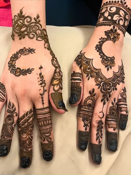 I specialize in creating unique tattoo-inspired mehndi designs that combine traditional henna artistry with contemporary tattoo aesthetics. My designs can include personalized elements like tributes to loved ones, pets, or meaningful symbols.