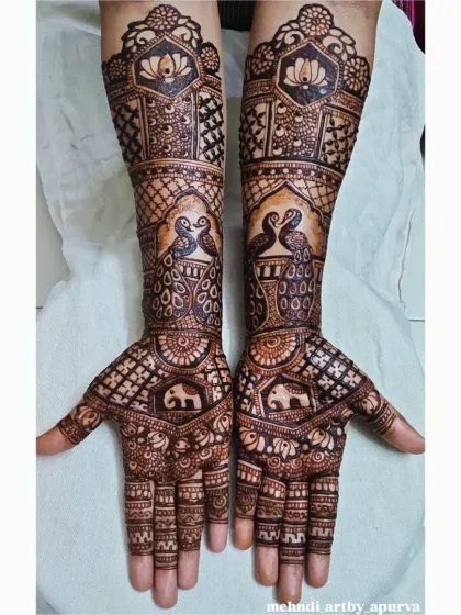 You’ll see classic motifs like lotus, peacock, elephant, and even kalash or swastika for good luck. These traditional wedding mehendi symbols carry real meaning for your big day. If you’re into something less traditional, I’m open to experimenting with the layout too.