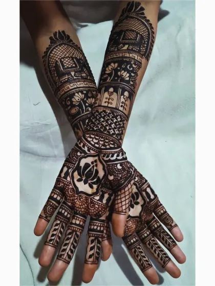 I create custom mehendi designs for various celebrations and social gatherings. My designs range from simple to elaborate patterns, incorporating traditional motifs like lotus flowers, peacocks, and geometric patterns based on your preferences.