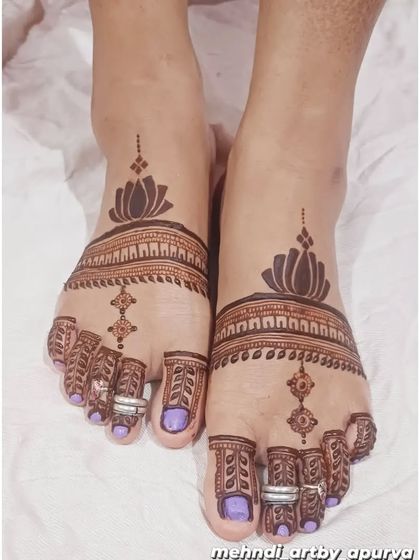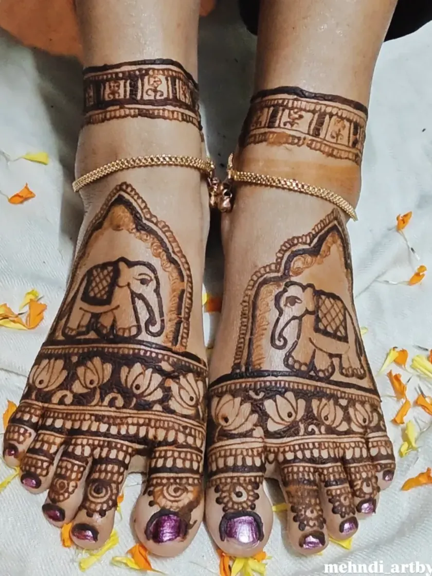 I offer mehendi designs for feet, ranging from elaborate patterns with traditional motifs to simple, chic accents. I ensure the design complements your style, whether you're looking for full coverage for a special event or a light touch.