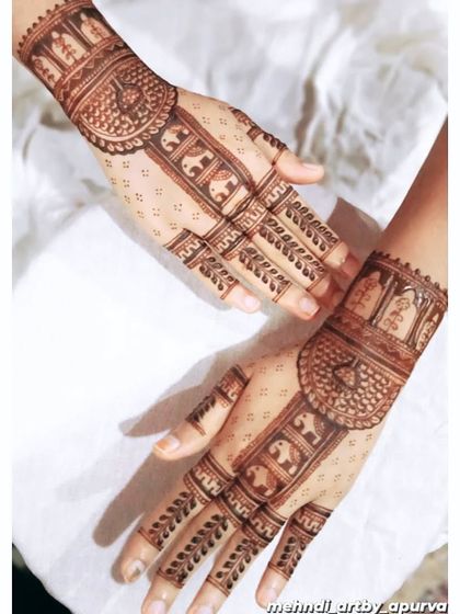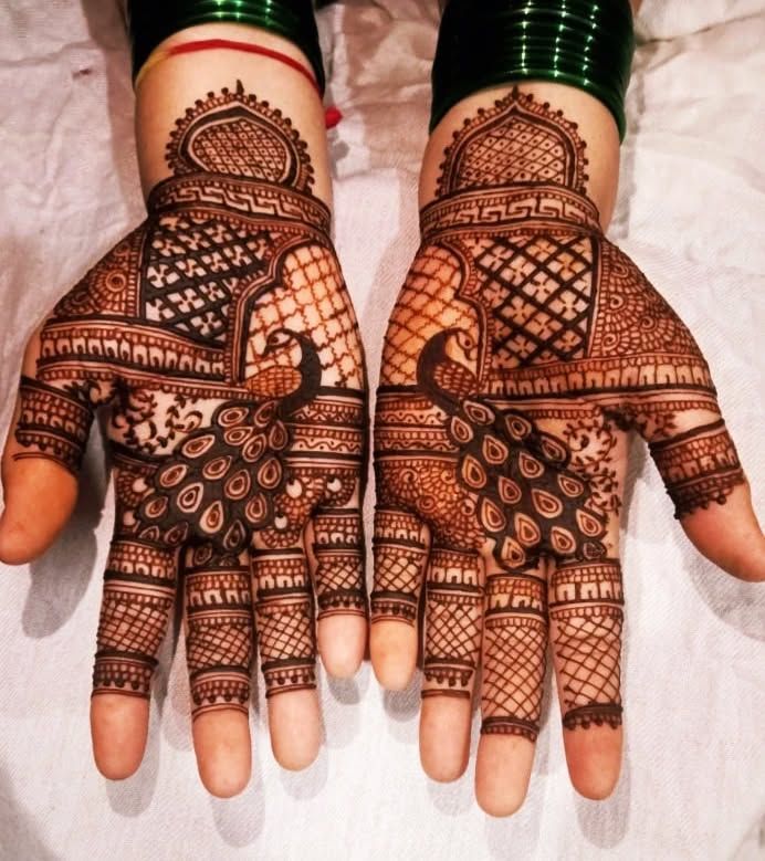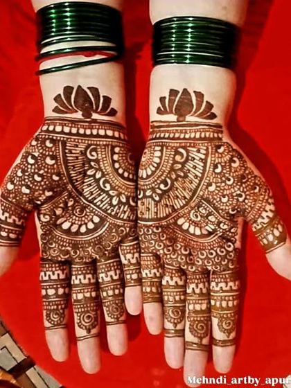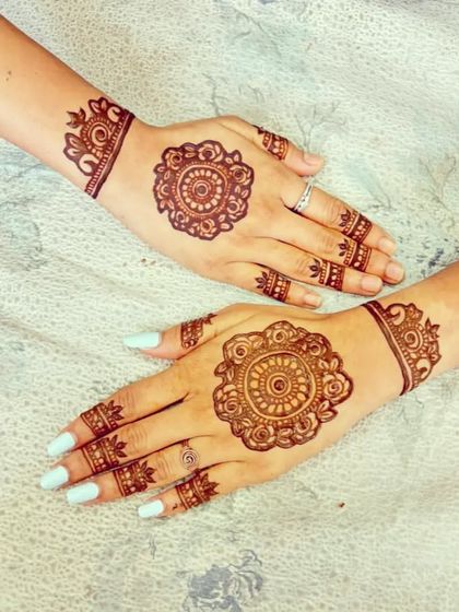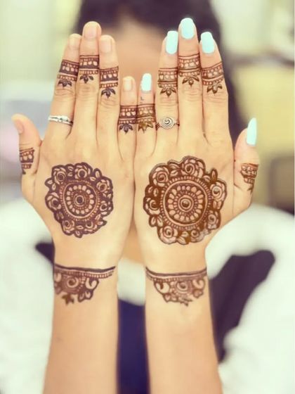 I focus on creating full, detailed patterns that cover the palm with beautiful symmetry and flow. These designs range from dense traditional fills to more spacious contemporary layouts, ensuring a rich and eye-catching result using high quality henna for a dark stain.