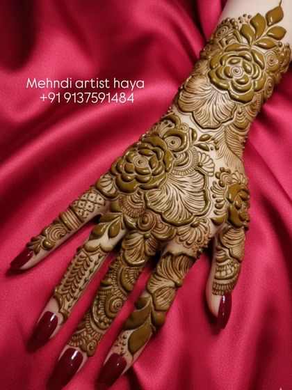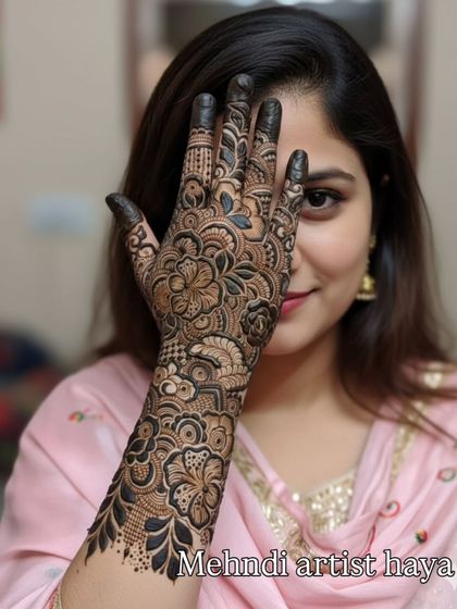 Every design I do is packed with fine, intricate lines. I mix classic Indian motifs with bold Gulf-style florals, and add shading for that 3D pop. If you want, I can sneak in your initials too - totally custom. So, whether you like detailed bridal mehndi designs or something more minimal, I make each piece stand out.