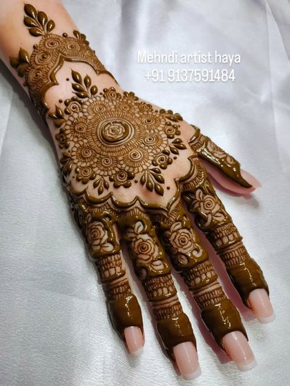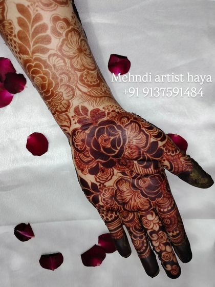 For the bride who wants it all. These designs feature full coverage from fingertips to elbow, weaving together traditional motifs, bold florals, and personalized elements. Each design is a unique story, created with immense 'mehnat' to make your special day unforgettable.
