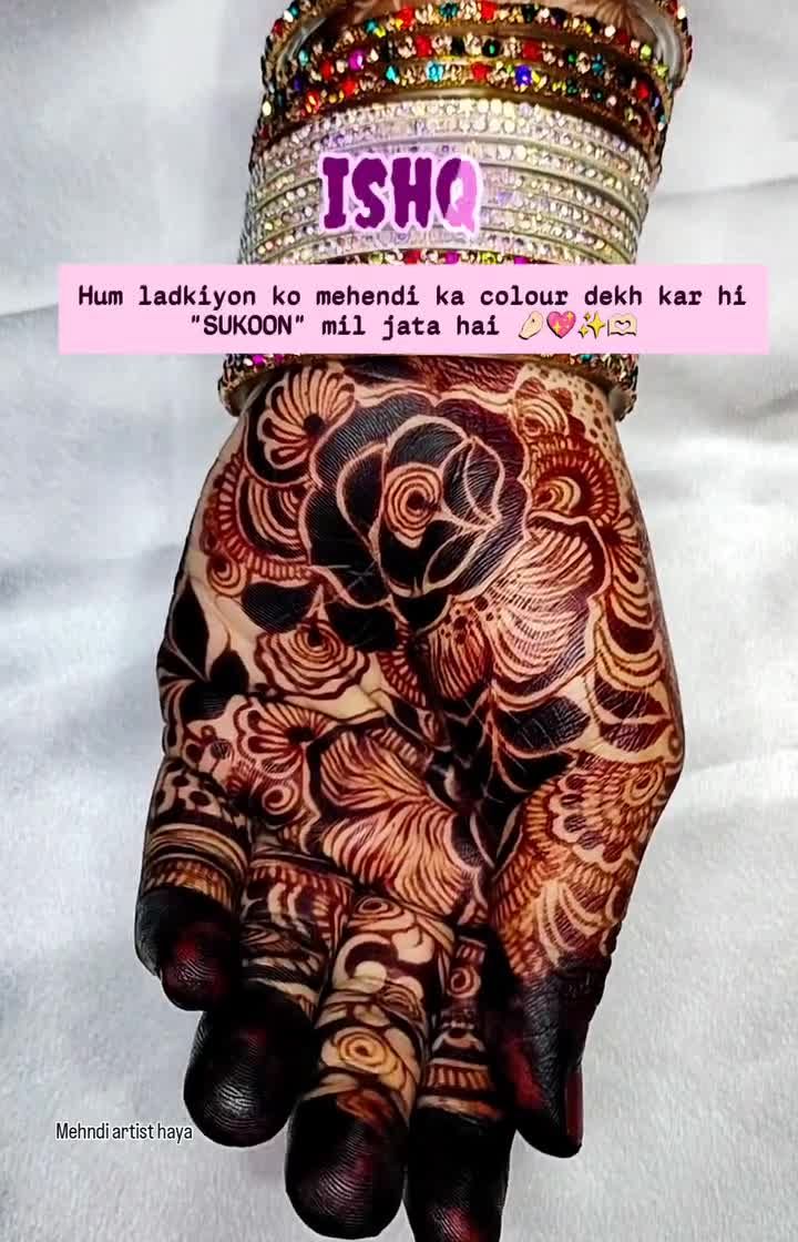 The proof is in the color. I make my own 100% natural henna paste to guarantee a deep, dark, and long-lasting stain. Dekho, this is the rich, dark brown color every bride dreams of, not that pale orange you get from chemical cones.