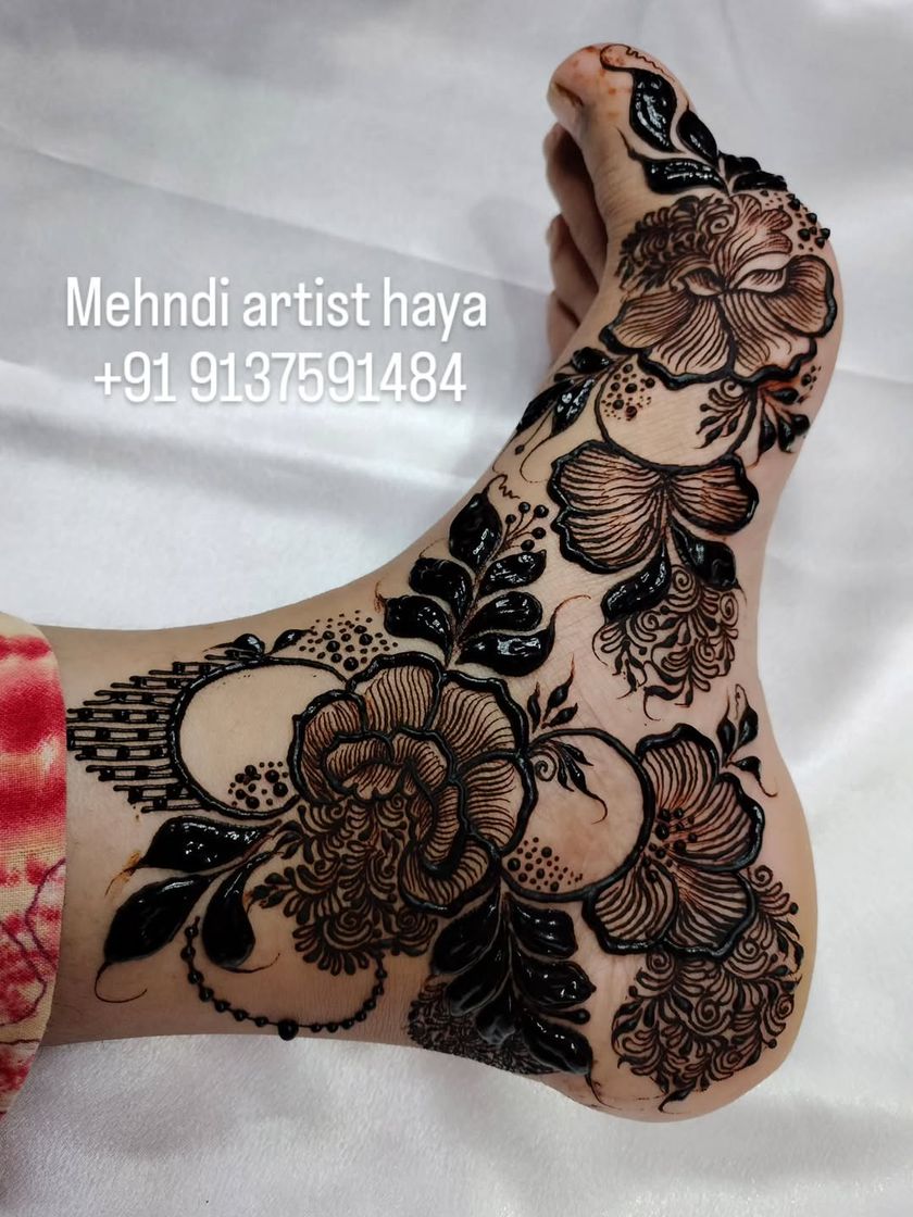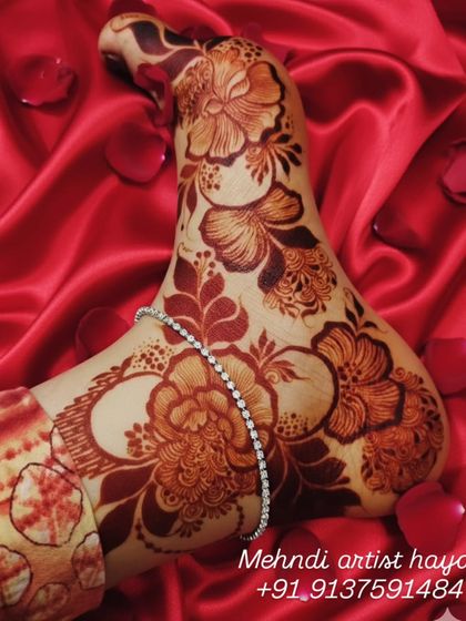 Don't forget your feet! I create stunning, intricate henna designs that complement your bridal look. From full coverage that mimics traditional 'alta' to delicate floral vines and anklets, I make sure you are beautiful from head to toe.