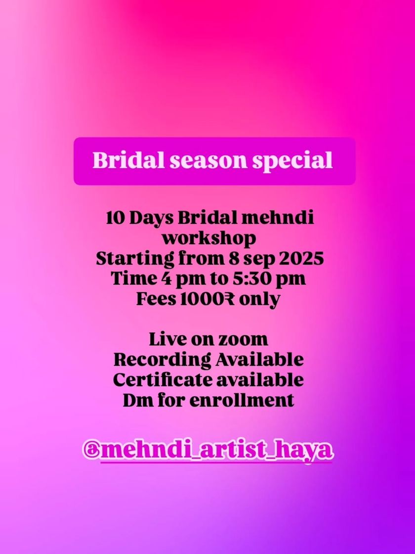 This is for students who want to learn professional-level bridal mehndi. I will teach you how to create full-coverage, detailed designs that are perfect for a bride's special day, including everything from traditional motifs to modern Gulf-style patterns with bold shading.