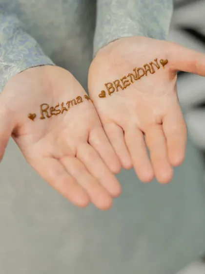 I create custom bridal mehndi with personal details and natural henna for a deep, long-lasting stain, making each design unique to you.