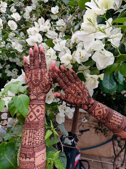 Creating bridal mehndi is slow, detailed work. I think of it like tending a garden - every line gets my full attention. It’s not about finishing fast, but about making something that feels special and totally yours.