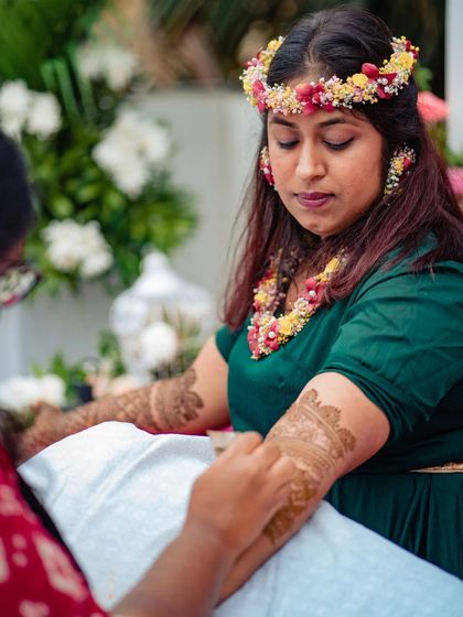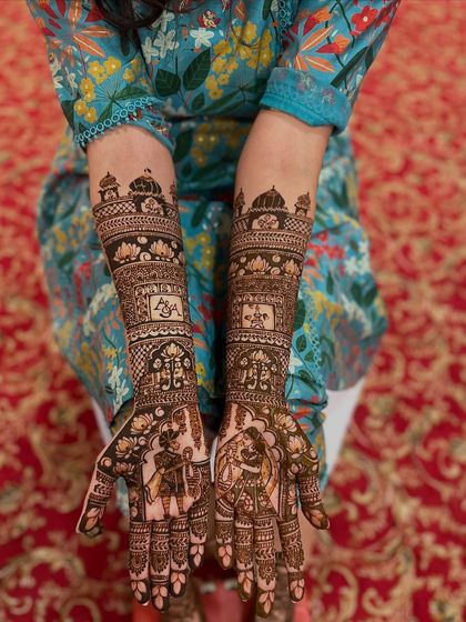 Your mehndi should be as unique as your love story. I specialize in weaving personal elements into the design, from couple portraits and initials to symbols that represent your shared jokes and memories.