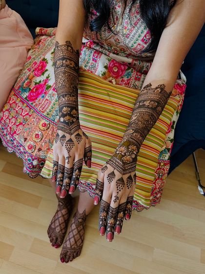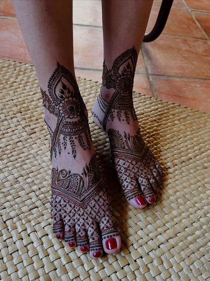 Complete your bridal look with beautiful henna for your feet. I design everything from simple, elegant patterns to full coverage designs that match the art on your hands.