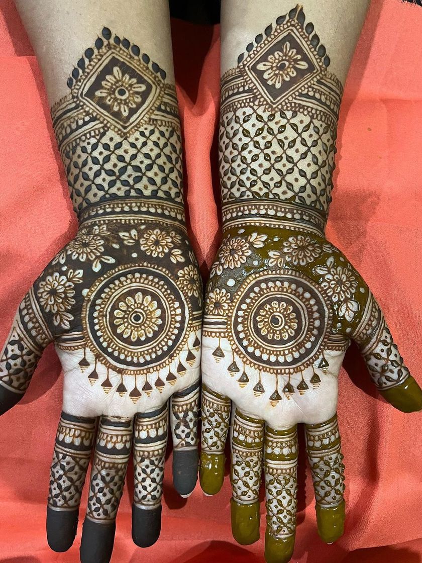 For those who love detailed, full-coverage mehendi. These designs are perfect for major festivals and celebrations, featuring dense patterns, fine lines, and a mix of traditional and contemporary elements that cover the palm, back of the hand, and wrist.