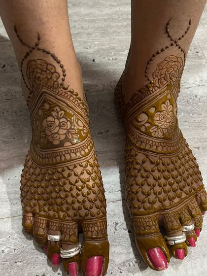 I offer a range of designs for feet, from simple and delicate patterns to elaborate bridal styles that cover the entire foot. Each design is created to beautifully complement your footwear and overall look.