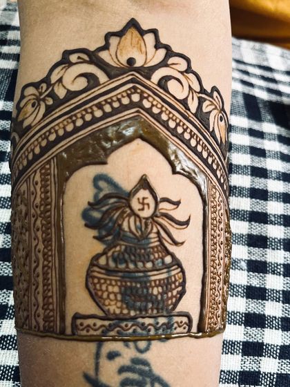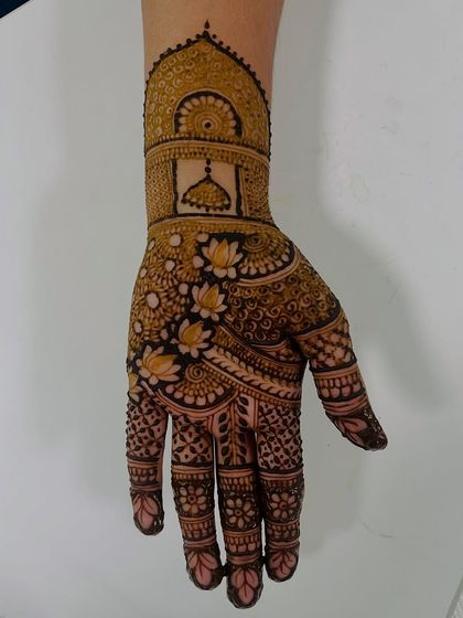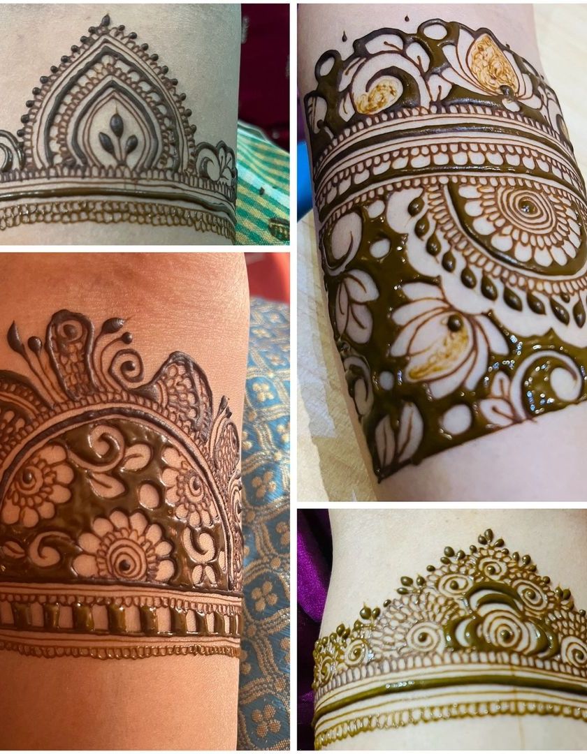 I love incorporating timeless Indian motifs into my work, such as the lotus, peacock, kalash, and dhol. This section also showcases my arm band designs, often used as the starting point for a full bridal mehendi.