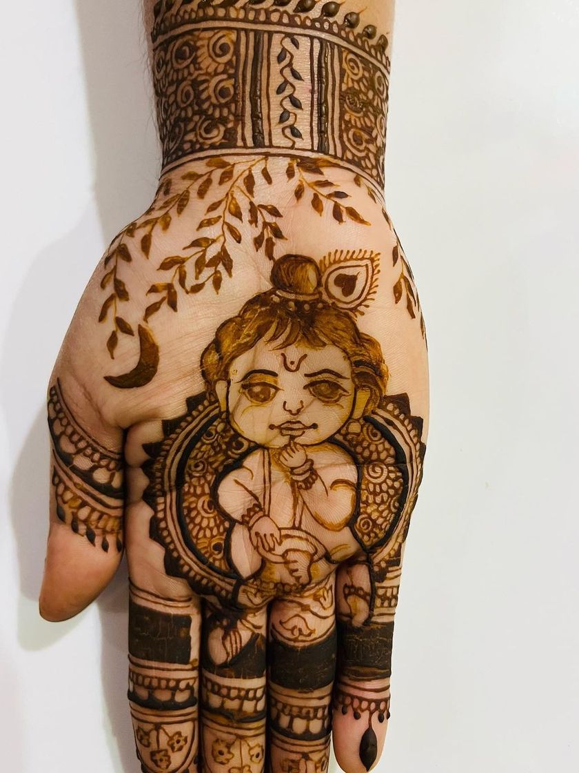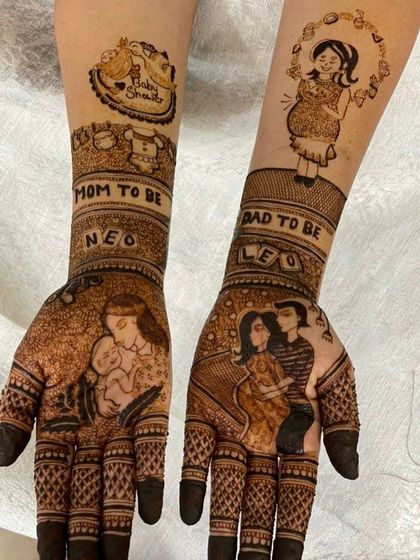 For many families, a baby shower or seemantha is a sacred occasion. I can incorporate blessed motifs like baby Krishna, Yashoda with Krishna, or other divine figures to bring a traditional and spiritual element to your maternity henna.