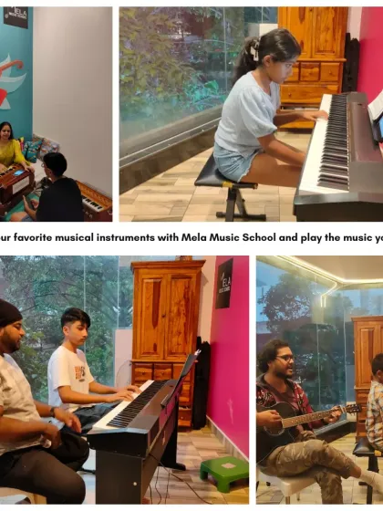 We’re Mela Music School, and honestly, music’s our heartbeat. We started up because we see music as pure magic - everyone’s got their own tune, right? Watching our 'little rockstars' go from nervous newbies to rocking out at our concerts, that’s the real deal for us. Families jam together at our Karaoke Nights, parents belting out 90s hits, and our Indian Recital brings everyone in for some Carnatic and Hindustani melodies. It’s more than lessons, it’s a music family.