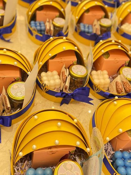 We specialize in creating elegant wedding-themed gift hampers that add a personal touch to your special day. Our offerings include: