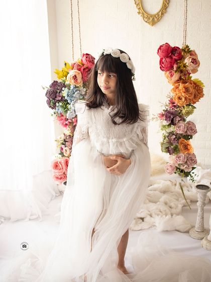 You’ll find all sorts of props - tiny pianos, wooden carts, fairy tale crowns, boho-chic bits, and more. Outfits range from playful to elegant. You pick the theme or keep it simple, I set it up. Lighting is professional, so whether you like bright or dramatic tones, we can do both.