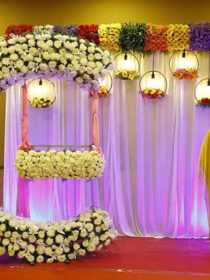 - Traditional ceremonies have my heart. For Haldi or Mehendi, think backdrops with banana leaves and chendu hoovu (marigold flowers). Want deity imagery or a proper floral ring? I’ve got it covered.