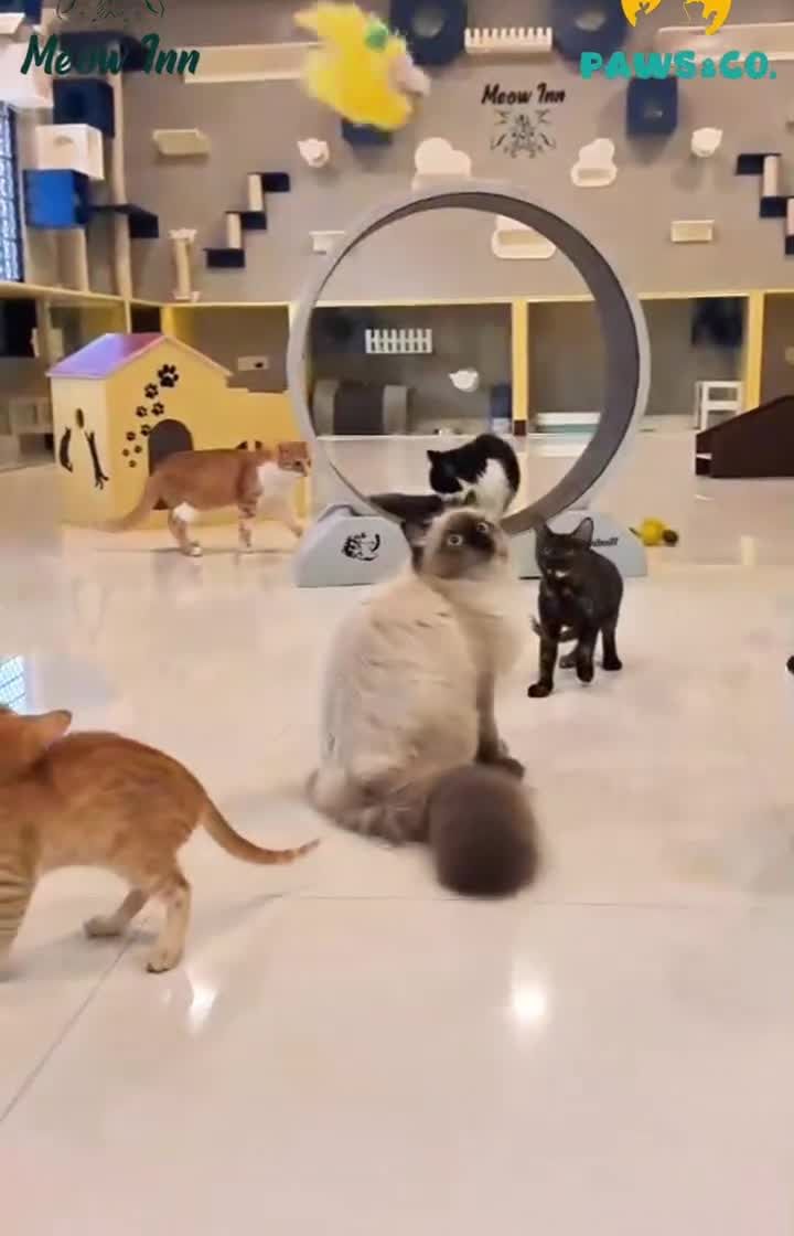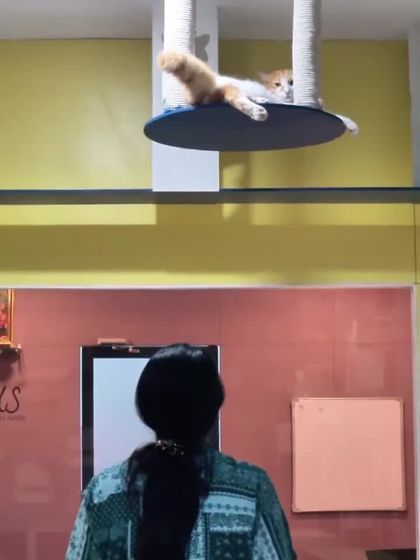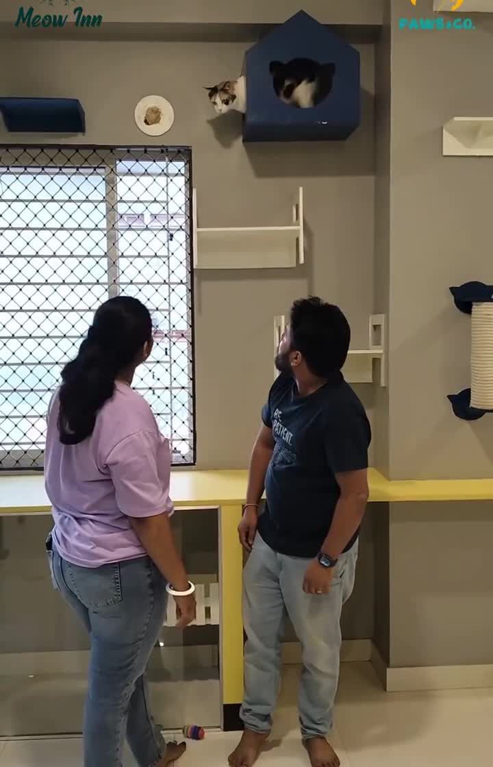 Take a look around the space I've built to be a cat's dream come true. It's a completely cage-free environment with custom-built wall furniture, climbing trees, and separate zones for play and rest, ensuring every cat has the space they need.