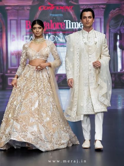 Hey, I’m Meraj Anwar from Meraj Couture. Our vibe? Think royalty, but not the stiff kind, more like you walking in feeling like a queen or king. Every dress, every sherwani, we treat it like art, mixing old-school heritage with high fashion. We just dropped ‘Ruvaah’ – it’s all about soul, every thread got a story. Showed off at Bangalore Times Fashion Week, and yeah, we’re all about making your big day feel epic, not just fancy.