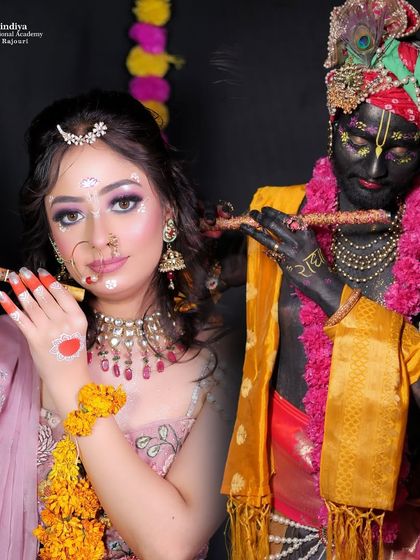Unleash your creativity and explore the world of editorial and fantasy makeup. I will guide you through creating imaginative looks, from thematic photoshoots like Radha-Krishna and Shiv-Parvati to festive SFX makeup for Holi and Halloween.