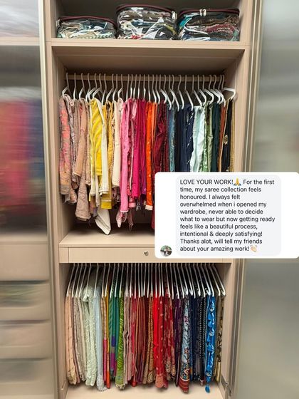 We understand the unique needs of storing Indian wear. We create dedicated systems for your sarees, lehengas, and dupattas, using methods that prevent damage and display your collection so every piece is visible and ready to wear.