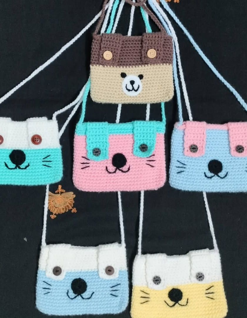 I crochet strong and simple bags, purses, and mobile pouches that are easy to wash and completely plastic free. I offer mini sling bags for kids with fun animal faces, as well as wallets and mobile pouches for everyone. Each one is made with durable cotton yarn and finished with a wooden button.