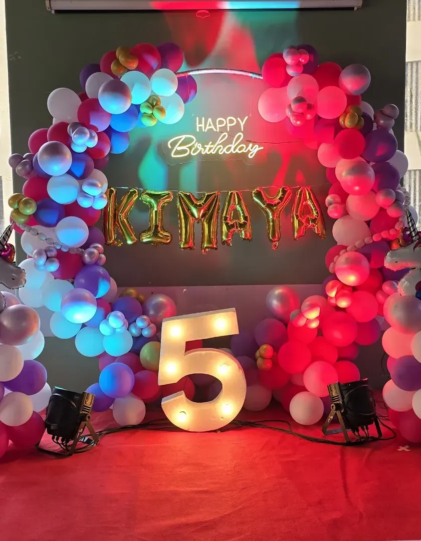 You don't need a big venue to have a beautiful party. I specialize in transforming your home into a festive space for birthdays, romantic surprises, or welcoming a new baby. I offer everything from simple balloon bunches and ceiling decor to full backdrop setups.