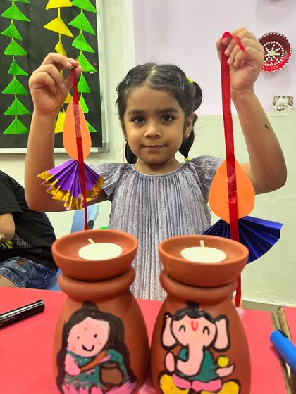 We offer immersive art workshops themed around festivals like Diwali and Dussehra. Our sessions include traditional crafts like diya painting, Ravana effigy making, and festive decorations. Each workshop combines artistic techniques with cultural elements, making them both creative and educational.