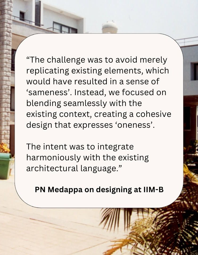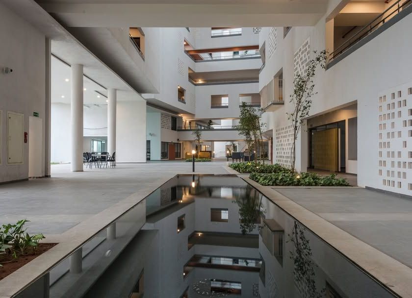We have a long history of designing for the IIM Bangalore campus, creating student housing that fosters interaction and learning outside the classroom. Our designs reinterpret the campus's architectural legacy, balancing the need for higher density with the creation of intimate, human-scaled courtyards and breakout spaces.