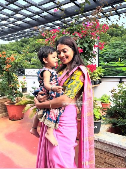 Creating matching or complementary outfits for mothers and their children is one of my favorite things to do. I can design a child's Pattu Pavadai or kurta set to perfectly match the mom's Kanjeevaram saree, using the same fabrics and embroidery for a beautiful connection.