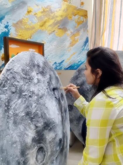 Hey, we’re Mirakhi Design Studio. I’m Pratiksha, always chasing the moon, literally and artistically. Home should feel like a poem, na? That’s what we try to do – fill every space with a bit of magic, like our 3D moon art installation. Life as an artist is messy, lots of detours, but that’s where the best stories happen. Art is my therapy, and we want it to heal your home too.