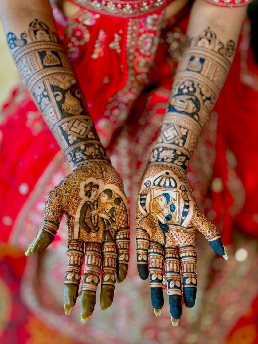 This is my specialty and what I love doing most. I work with you to weave your personal story into your bridal mehendi, including couple portraits, names, initials, special dates, or symbols from your journey together. Your hands will tell the unique story of your love.