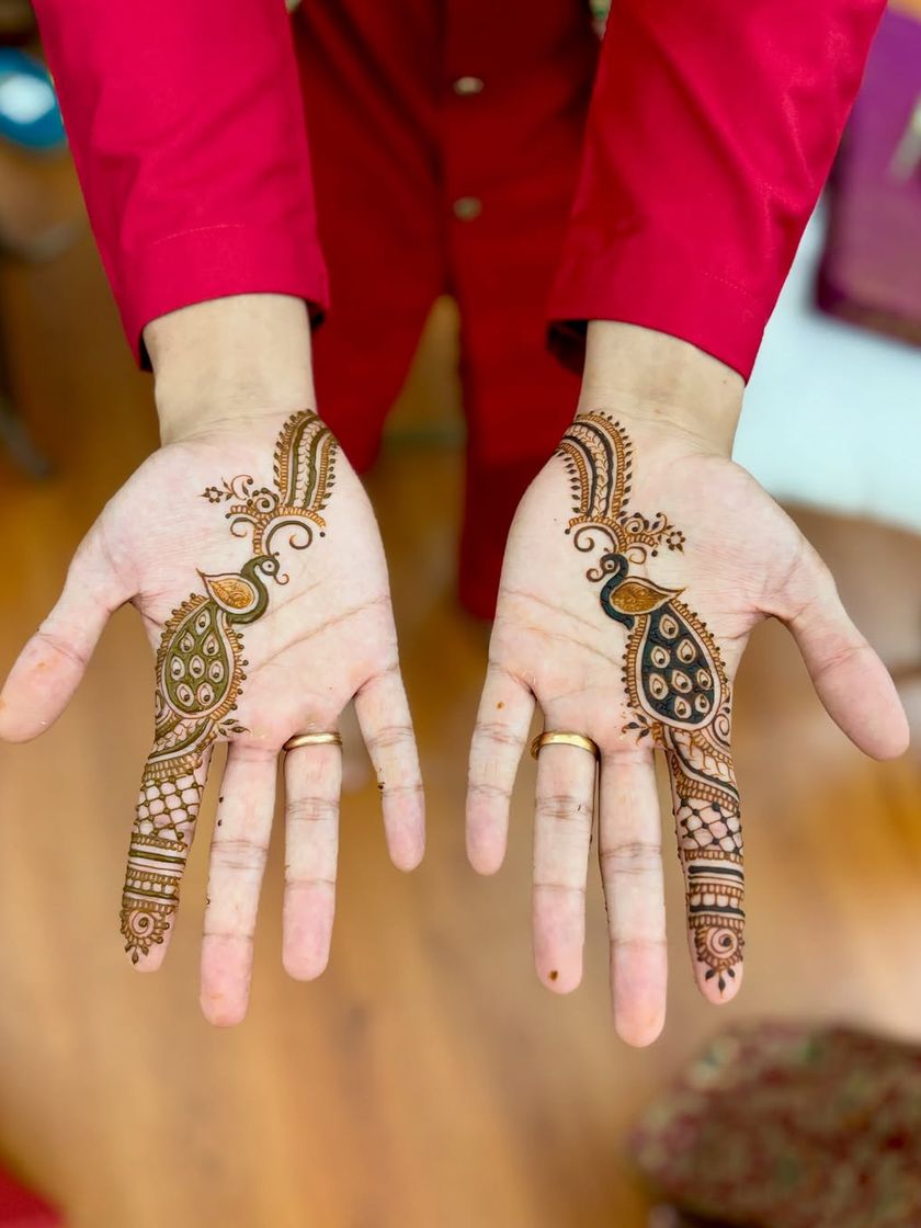 Mehendi is a beautiful tradition for grooms too. I create masculine and symbolic designs, often incorporating initials, names, or motifs that coordinate with the bride's mehendi. It's a wonderful way to participate in the festivities and get some amazing couple photos.