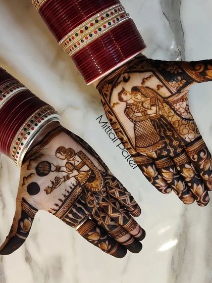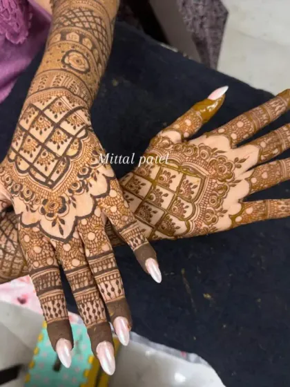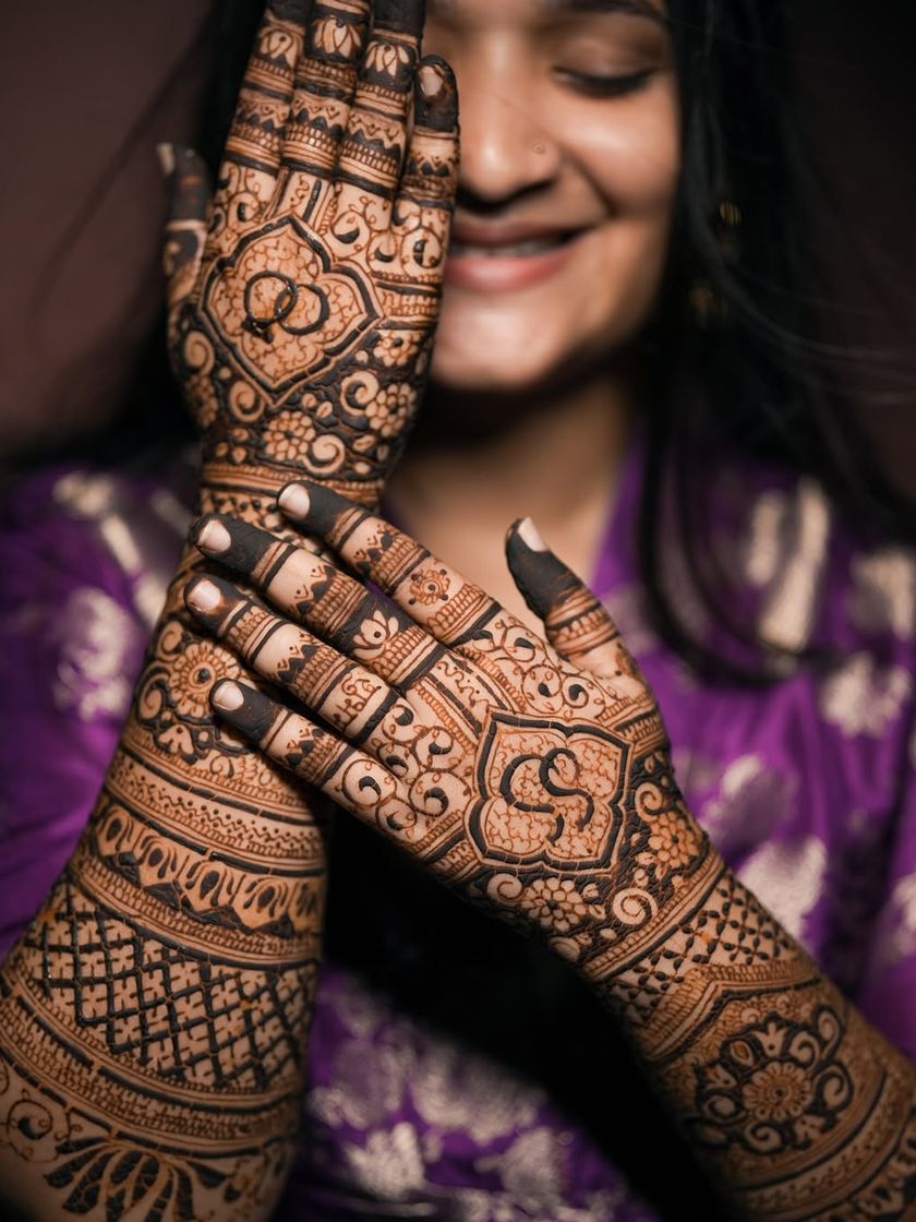 The back of the hands is a canvas for bold and beautiful statements. I design everything from heavy, full-coverage patterns with elephants and lotuses to elegant floral bands and geometric designs that look stunning when you fold your hands in 'namaste'.