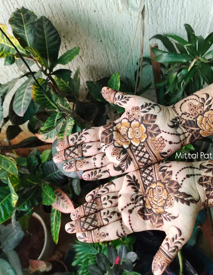 Floral patterns are a timeless and popular choice for guest mehndi. I create a variety of floral designs, from bold, prominent blooms to delicate, trailing vines, ensuring a fresh and beautiful look for everyone.
