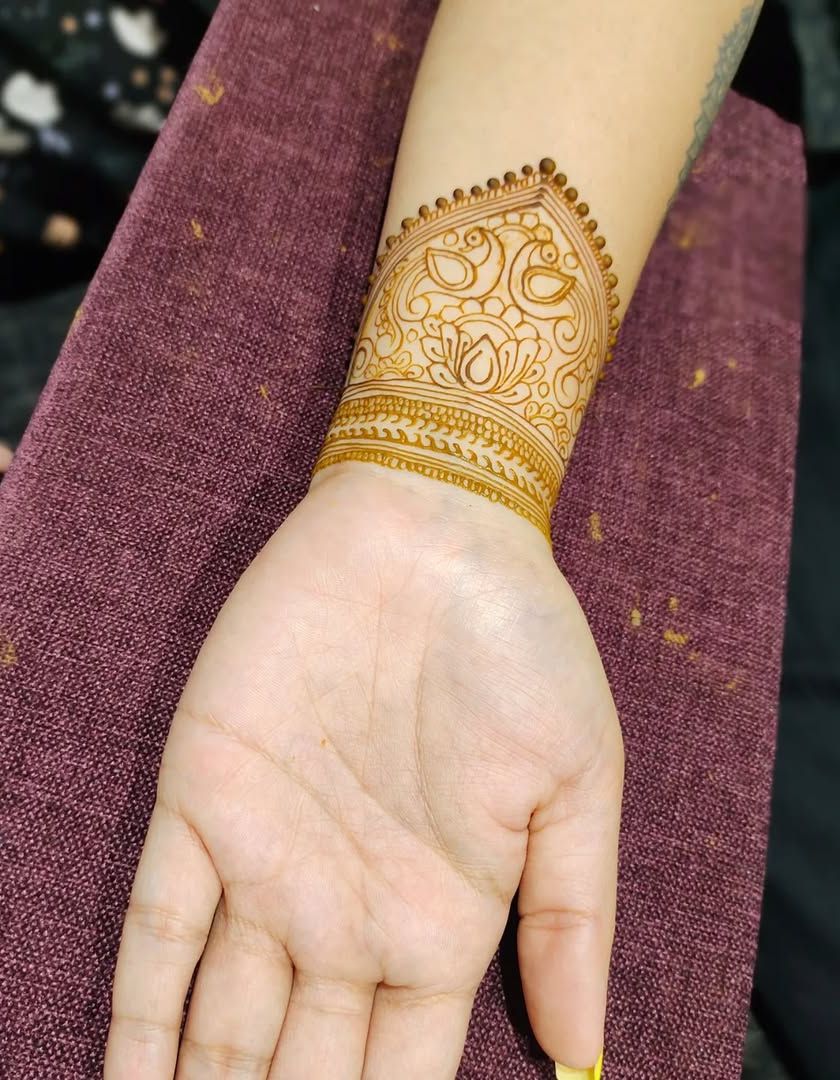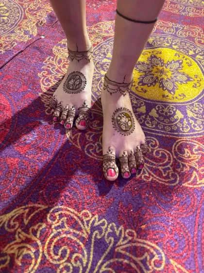 Complete your festive look with my stylish wrist cuffs and elegant feet designs. These are perfect for guests who want a quick, modern touch or a beautiful accent to complement their hand mehndi.