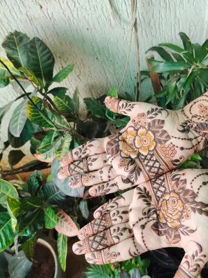 I love to create mehndi that tells a story. Whether it's incorporating your initials, a meaningful quote, or creating special designs for festivals like Karwachauth, I can customize your henna to make it uniquely yours.