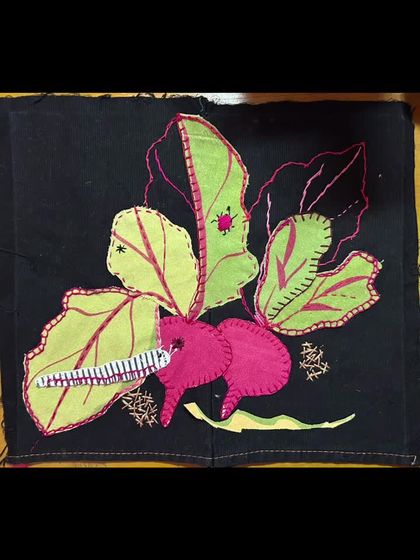 Using fabric scraps and thread as my medium, I create textured story art, almost like drawing with a needle. This technique can be used to create framed wall art, upcycle clothing with unique patches, or tell a personal story through textiles.