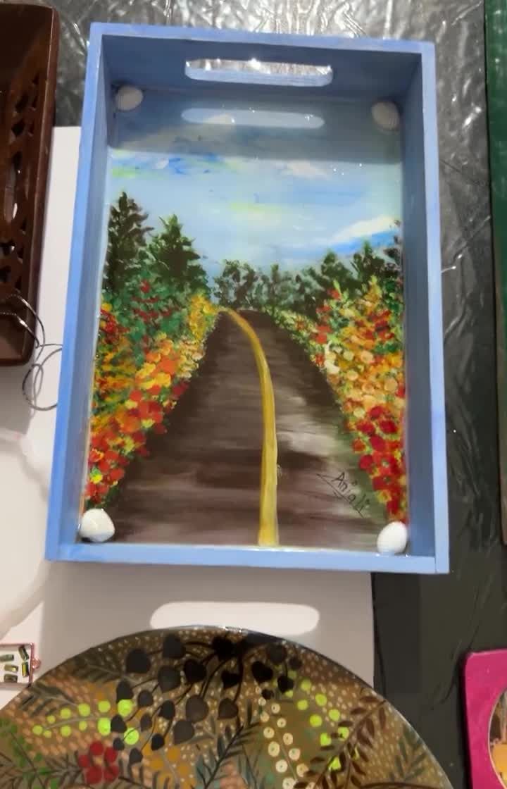 I give everyday objects a second life as decorative art for your home. Old vinyl records become vibrant wall clocks or plates sealed with resin, and forgotten umbrellas are hand-painted into cheerful decor pieces.