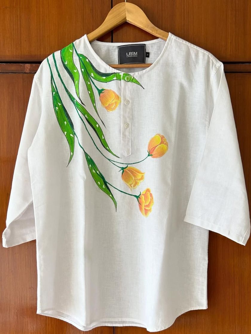 I transform your favorite garments like kurtas, shirts, and sarees into one-of-a-kind wearable art. Bring me your clothing and your dream design, and I will hand-paint it, creating a piece that is uniquely yours and durable for wear.
