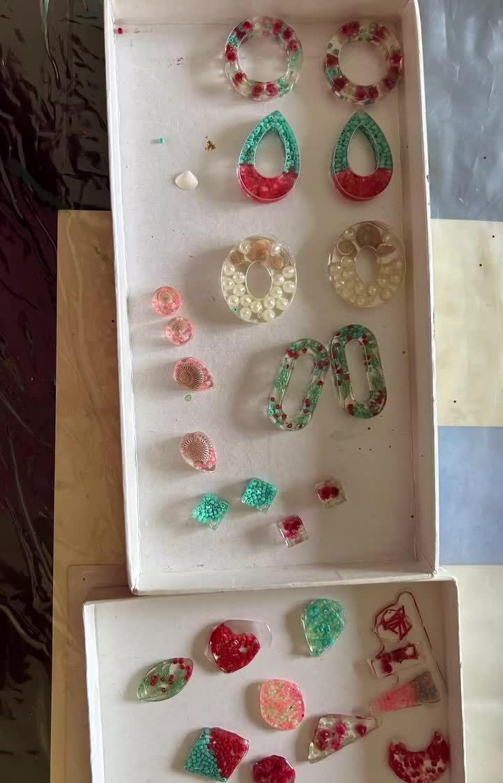 My creative experiments often lead me to make small, wearable art pieces like earrings and pendants. I use resin to encapsulate tiny paintings, colors, and found objects, creating unique and lightweight jewelry.