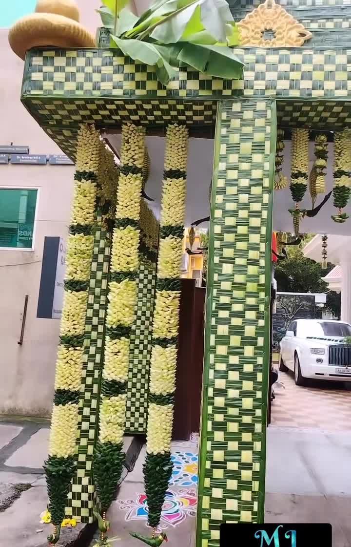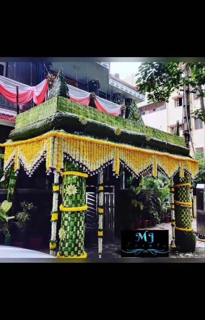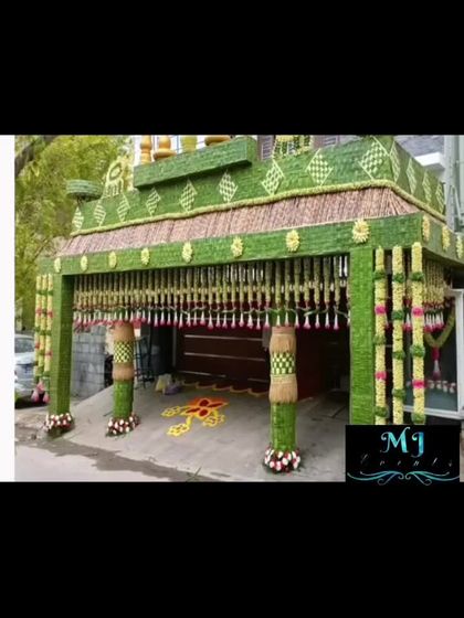 Welcome guests into your new home with a traditional 'Chapra' canopy. I construct these impressive entrance structures entirely from handwoven coconut leaves and fresh flowers, creating a truly memorable first impression.