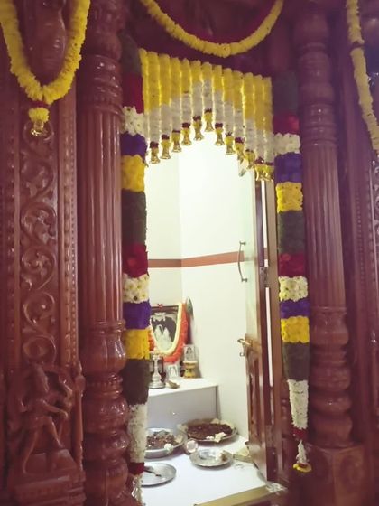 I bring a sacred touch to your home with custom decorations for pooja rooms and doorways. This includes thick floral 'Toran' garlands and detailed backdrops for deities, all designed to fit your space perfectly.