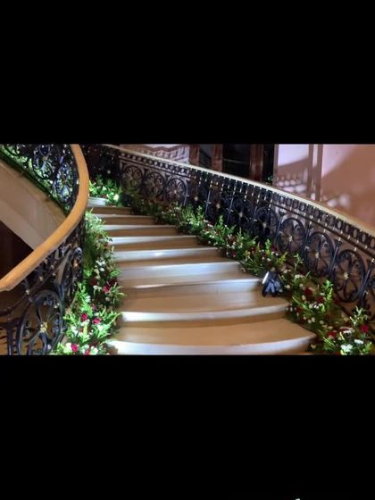 Beyond the main ceremonies, I design custom decor for any family event. This includes elegant stage backdrops, seating arrangements, and unique floral accents for spaces like staircases.