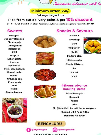 All Traditional Sweets & Meals - We serve authentic Odia sweets like Rasagola, Chhenapoda, Sandesh, plus snacks and meals like Mutton Thali and home-style lunch parcels.
