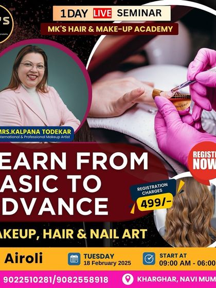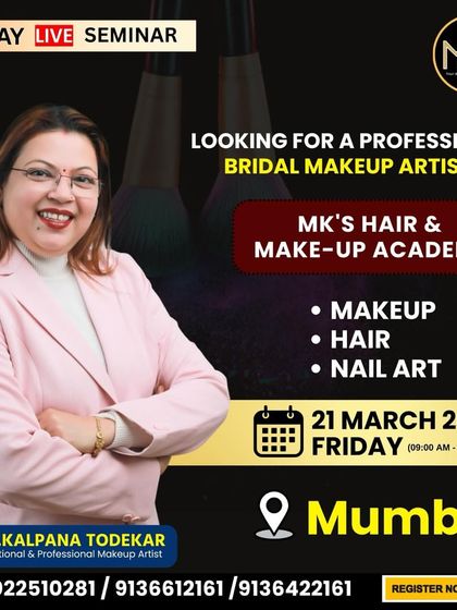 Namaste, I’m Kalpana from MK’s Academy. Makeup isn’t just kaam (work) for me - it’s art, it’s devotion. Every Navratri, I get to do Devi murti’s makeup, and that’s pure magic for me. This is why I started the academy in Kharghar, so others can feel that spark too. More than 1000 students have trained here, from housewives to young girls. Hum yahan artists banate hain, not just makeup experts. Apne beauty career ko ek nayi disha do, come start your own journey.