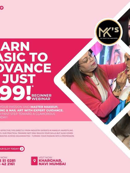 Namaste, I’m Kalpana from MK’s Academy. Makeup isn’t just kaam (work) for me - it’s art, it’s devotion. Every Navratri, I get to do Devi murti’s makeup, and that’s pure magic for me. This is why I started the academy in Kharghar, so others can feel that spark too. More than 1000 students have trained here, from housewives to young girls. Hum yahan artists banate hain, not just makeup experts. Apne beauty career ko ek nayi disha do, come start your own journey.