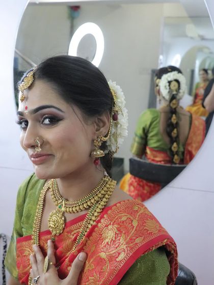 I specialize in creating unforgettable hairstyles for your most important celebrations. This gallery showcases a variety of traditional looks, including intricate Peshwai updos, elegant South Indian braids, and vibrant Punjabi styles, ensuring every bride feels her most beautiful.