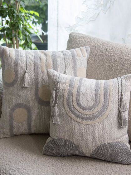 Hand-Finished Embroidery & Metal Work - See our hand-finished embroidery furnishings and laser-cut metal consoles at Gurgaon or Delhi centres.